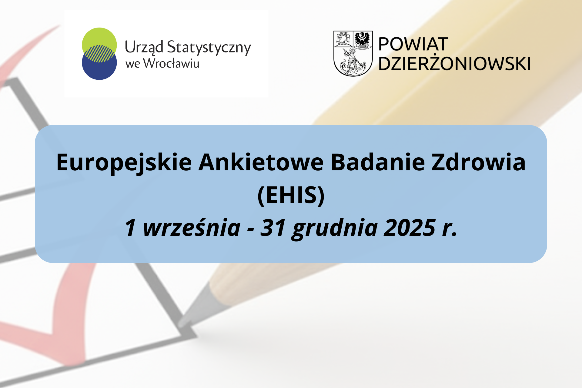 Od 1 września do 31 grudnia na terenie naszego powiatu prowadzone będzie Europejskie Ankietowe Badanie Zdrowia (EHIS).
