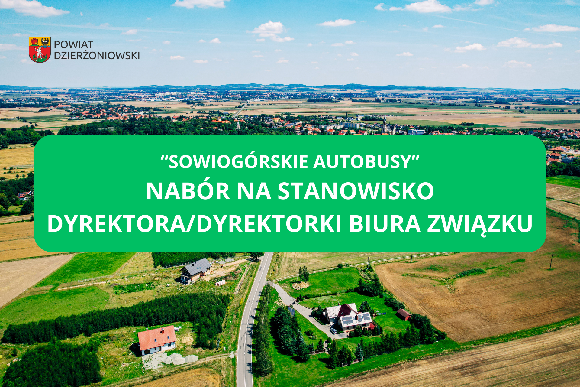 Zarząd Związku Powiatowo-Gminnego „SOWIOGÓRSKIE AUTOBUSY” ogłasza nabór na wolne kierownicze stanowisko urzędnicze Dyrektora/Dyrektorki Biura Związku Powiatowo-Gminnego “SOWIOGÓRSKIE AUTOBUSY”.