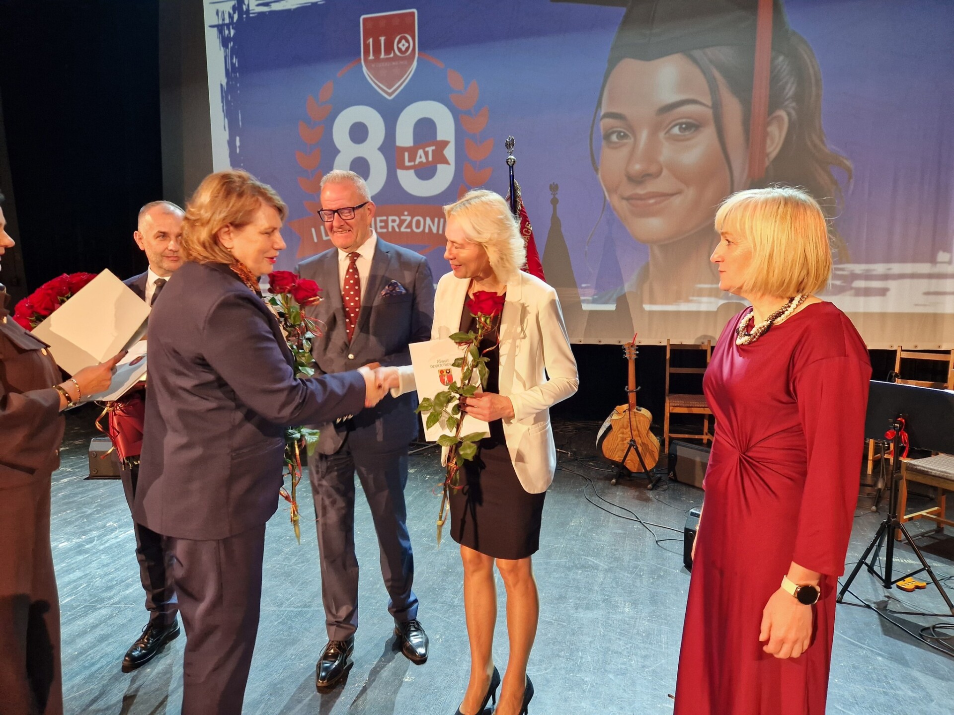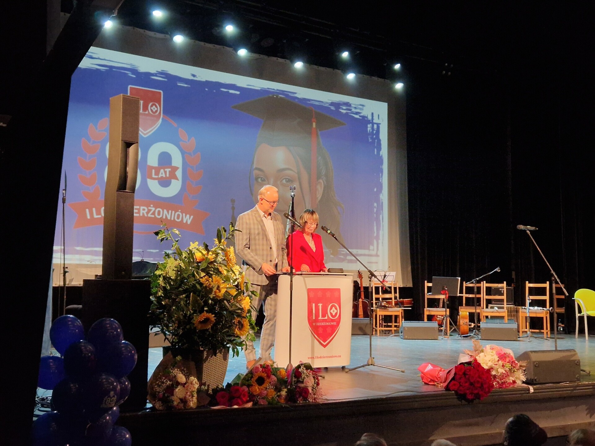 Gala jubileuszowa I LO w Dzierżoniowie, połączona ze spotkaniem z absolwentami i przyjaciółmi szkoły, odbyła się w Dzierżoniowskim Ośrodku Kultury. Gratulacje z okazji 80-lecia szkoły złożyli między innymi: starosta Grzegorz Kosowski, wicestarosta Andrzej Bolisęga, przewodnicząca Komisji Edukacji i Kultury Rady Powiatu Iwona Cegiełka oraz dyrektor Wydziału Edukacji Alicja Hromada.