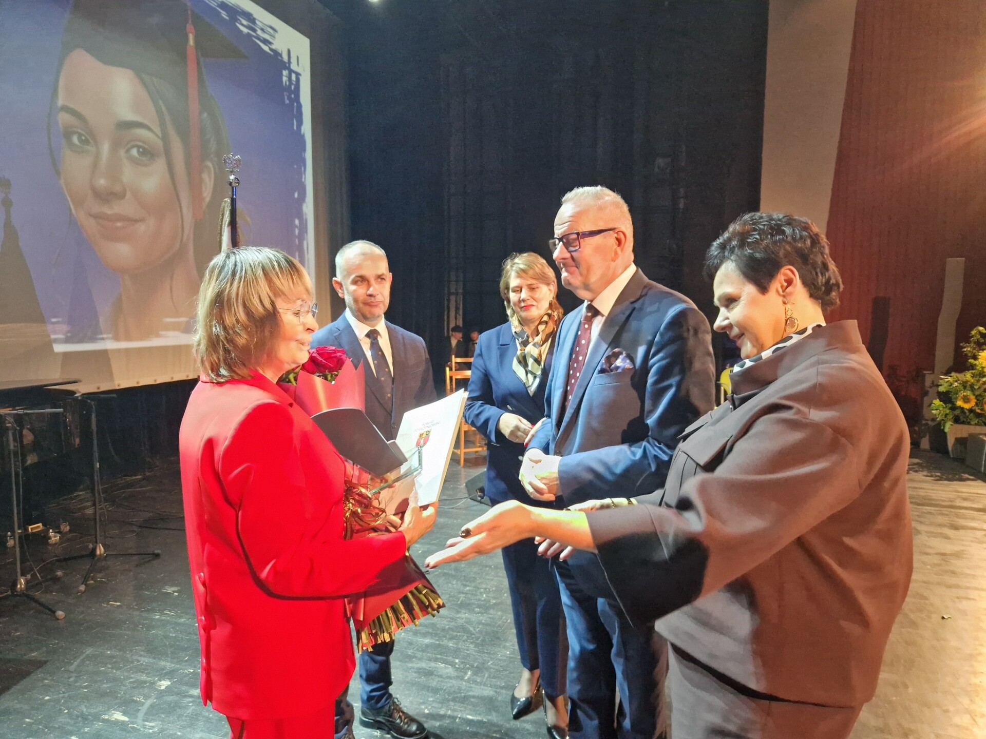 Gratulacje dla I LO przekazali także: burmistrz Dariusz Kucharski, zastępczyni burmistrza Dzierżoniowa Dorota Pieszczuch oraz przewodnicząca Rady Miejskiej Agnieszka Denysiak.